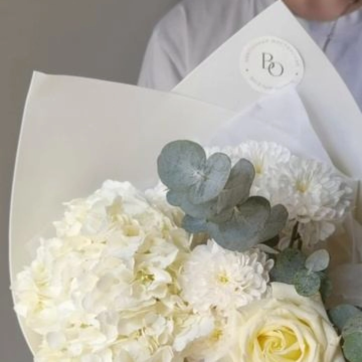 Состав: Гортензия, Эвкалипт, Роза, Хризантема кустовая