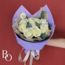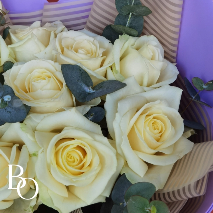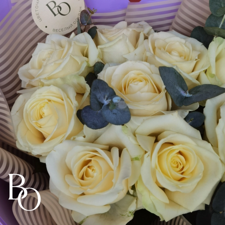Букет из 9 белых роз и веточки ароматного эвкалипта