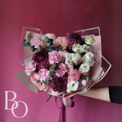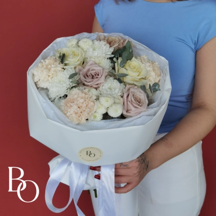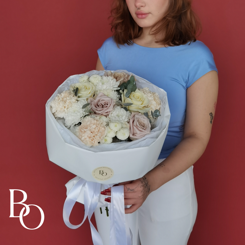 Свадебный букет формируется с использованием особой техники, позволяющей создать насыщенную и объемную композицию при небольшом размере. Заказ рекомендуется оформить за 3 недели до торжества, чтобы обеспечить своевременную подготовку. Это даст нам достаточно времени для подбора цветов и выполнения всех деталей в соответствии с вашими пожеланиями.