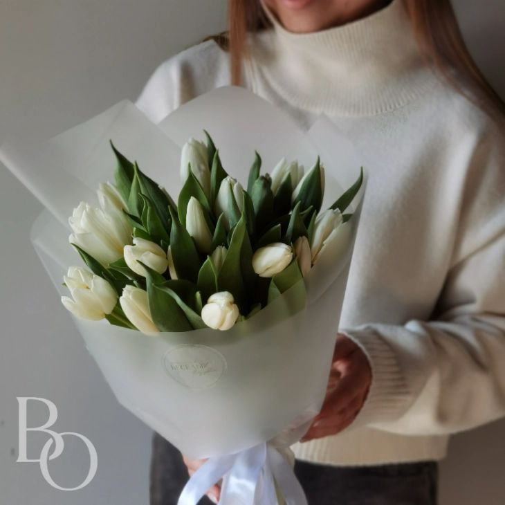 Букет из 21 белого тюльпана