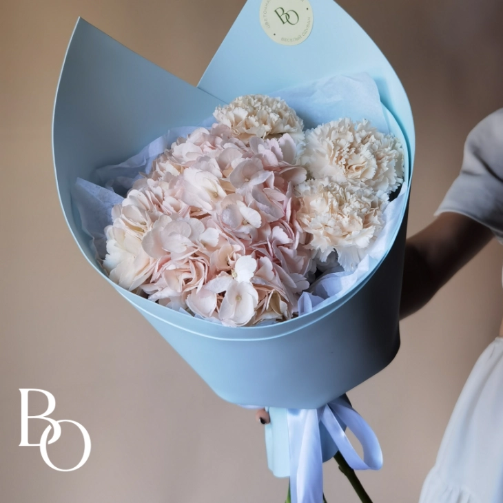 Фирменный букет от нас - про легкость, стиль и то самое ощущение весны. Нежные небесные оттенки, мягкие формы и ощущения спокойствия, уюта и обновления.