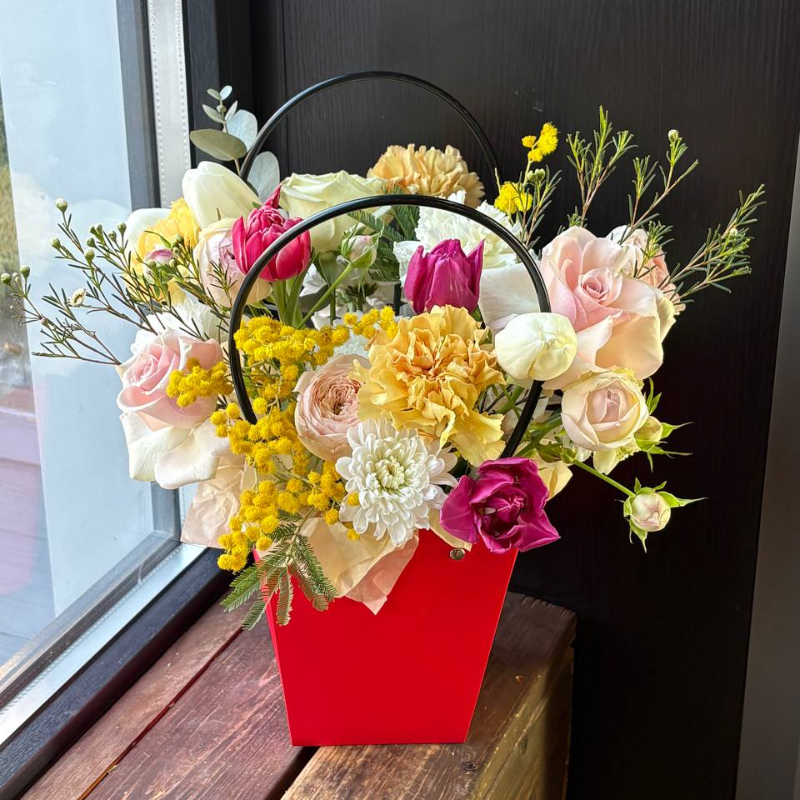 Упаковка из плотного материала, наполненная водой для транспортировки букета. Помогает сохранить свежесть цветов, пока их не переместят в вазу. *Бесплатно при заказе от 5000.