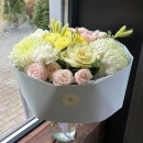 Упаковка из плотного материала, наполненная водой для транспортировки букета. Помогает сохранить свежесть цветов, пока их не переместят в вазу. *Бесплатно при заказе от 4500.