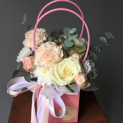 Упаковка из плотного материала, наполненная водой для транспортировки букета. Помогает сохранить свежесть цветов, пока их не переместят в вазу. *Бесплатно при заказе от 5000.