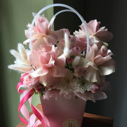 Упаковка из плотного материала, наполненная водой для транспортировки букета. Помогает сохранить свежесть цветов, пока их не переместят в вазу. *Бесплатно при заказе от 4500.