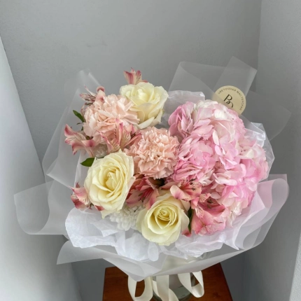 Упаковка из плотного материала, наполненная водой для транспортировки букета. Помогает сохранить свежесть цветов, пока их не переместят в вазу. *Бесплатно при заказе от 5000.