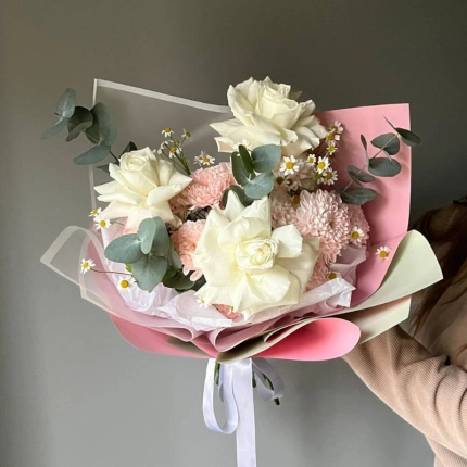 Упаковка из плотного материала, наполненная водой для транспортировки букета. Помогает сохранить свежесть цветов, пока их не переместят в вазу. *Бесплатно при заказе от 4500.