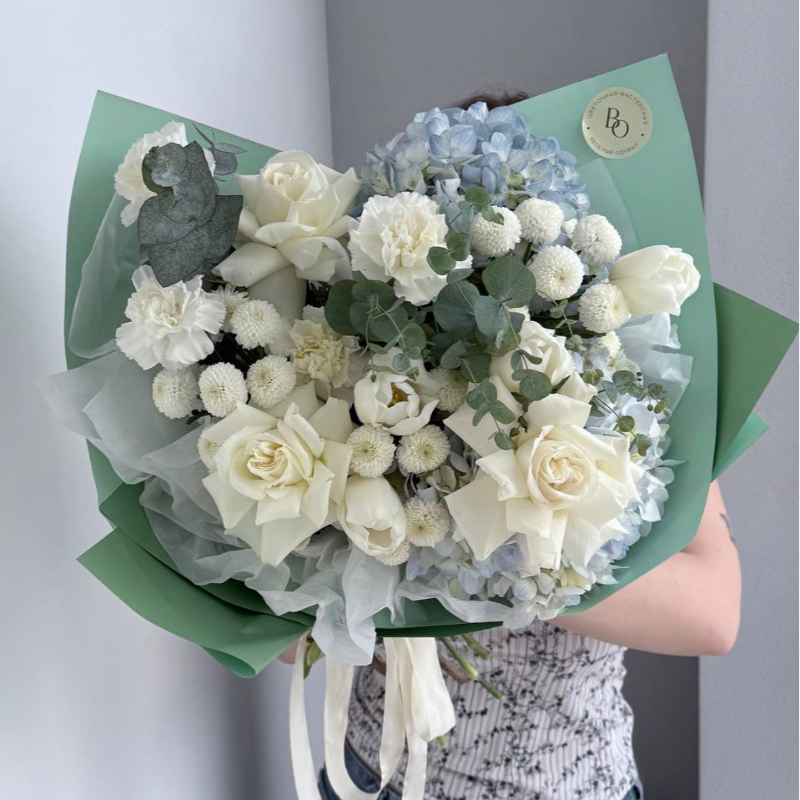 Упаковка из плотного материала, наполненная водой для транспортировки букета. Помогает сохранить свежесть цветов, пока их не переместят в вазу. *Бесплатно при заказе от 5000.