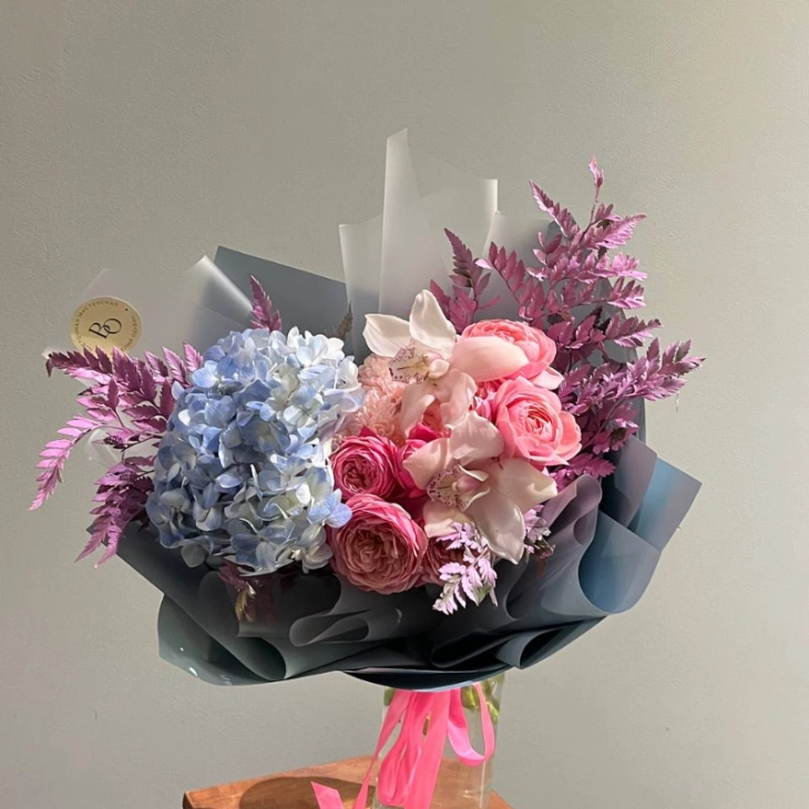 Упаковка из плотного материала, наполненная водой для транспортировки букета. Помогает сохранить свежесть цветов, пока их не переместят в вазу. *Бесплатно при заказе от 4500.