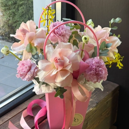 Упаковка из плотного материала, наполненная водой для транспортировки букета. Помогает сохранить свежесть цветов, пока их не переместят в вазу. *Бесплатно при заказе от 5000.