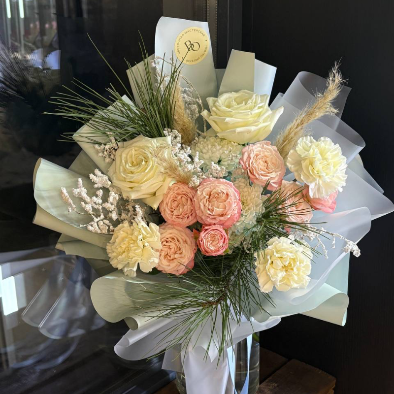 Свадебный букет формируется с использованием особой техники, позволяющей создать насыщенную и объемную композицию при небольшом размере. Заказ рекомендуется оформить за 3 недели до торжества, чтобы обеспечить своевременную подготовку. Это даст нам достаточно времени для подбора цветов и выполнения всех деталей в соответствии с вашими пожеланиями.