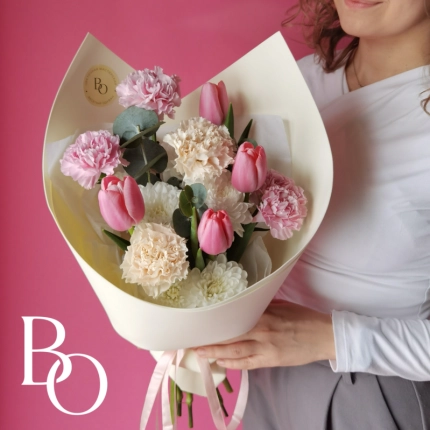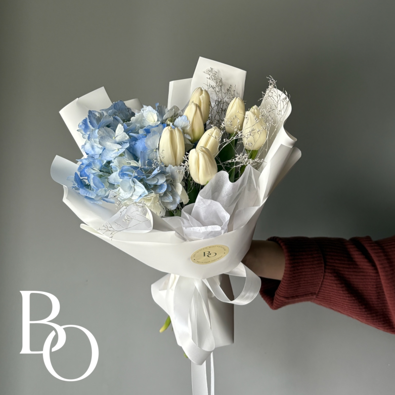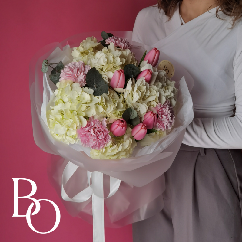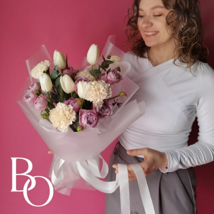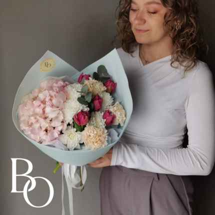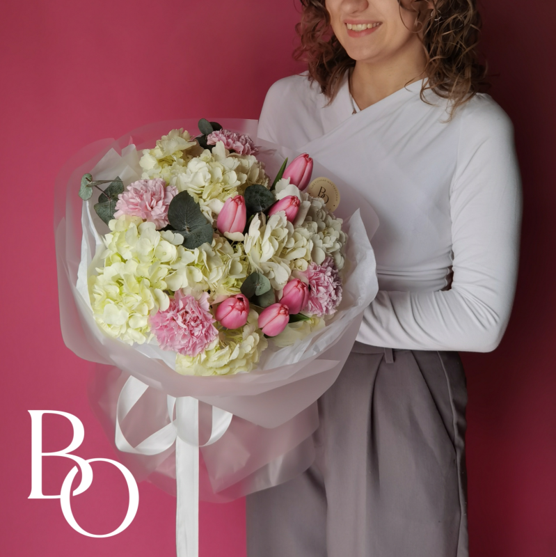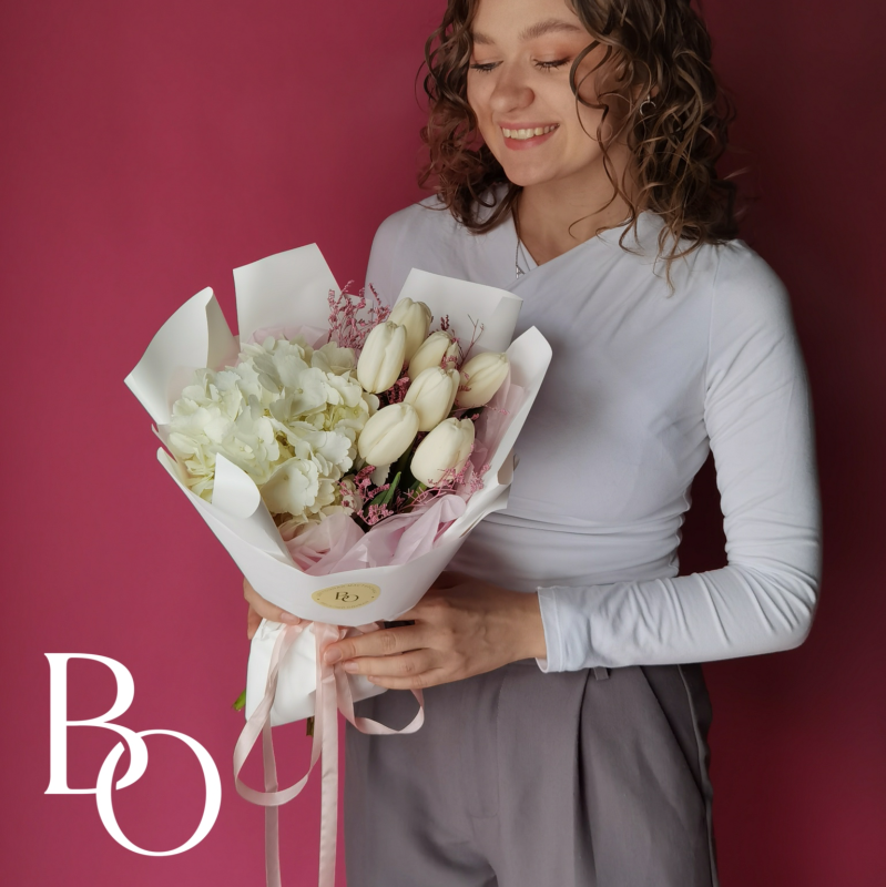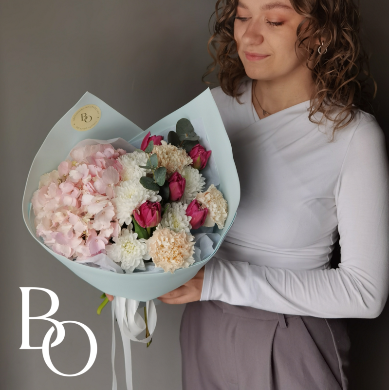 Свадебный букет формируется с использованием особой техники, позволяющей создать насыщенную и объемную композицию при небольшом размере. Заказ рекомендуется оформить за 3 недели до торжества, чтобы обеспечить своевременную подготовку. Это даст нам достаточно времени для подбора цветов и выполнения всех деталей в соответствии с вашими пожеланиями.